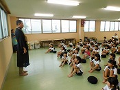 本日、ひかり幼稚園では年長児(月組)の子どもたちが「7座禅会」を修行しました。今回で4回目となり、先月よりも安定感が増し、作法もしっかりと身に付いてスムーズに進行して、充実感を実感し座ることが出来ました。幼稚園は間もなく夏休みに入りますが、生活の安定が何よりも大切です。姿勢を調えて、呼吸を調えて、心を調え日々安定して過ごして欲しいと願います。