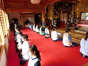 本日の早朝、全超寺の本堂で教職員の「座禅会」を修行しました。明日の二学期始業を前に教職員一同、身体と呼吸と心を調えました。二学期は活動を増やして子どもたちに自己肯定感を育てるよう努めてまいります。たくさん遊んで多くの体験を基に積極性を育んでいくようにいたします。
