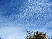 秋の青空は、高く感じます。晴れた日の秋空の抜けるような青空に、「うろこ雲」が浮かびます。「うろこ雲」は空の高い所にできる『高積雲』の一種ですが、高い所にできるので空気が澄み切っている時でないとはっきりと見えません。春や夏は日差しが強く、また地面の細かいチリやホコリ」が上昇気流に乗って舞い上がり、空気が濁ってしまって見えにくいのです。この時期、空気が澄み、「うろこ雲」との間を遮る低い雲がなく、うろこ雲をはっきりと見ることができます。