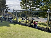 第二ひかり幼稚園の年長児(月組)の子どもたちは秋の遠足に黒羽運動公園に園バスに乗って出かけました。今週は秋が進んで気温が下がり、風にも秋の気配が感じられます。那須の山々は色づき始め黒羽の八溝山系でも紅葉が進んでいます。公園に到着後さっそく設置されているアスレチック遊具で存分に身体を動かして遊び、色づいていた公園の木々を眺めながら散策を楽しみました。少し肌寒い気温でしたが、身体を動かしている子どもたちにはちょうど良い気温に感じられ、楽しく過ごした遠足でした。