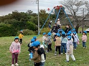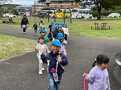 ひかり幼稚園の年中児(星組)の遠足を行いました。園バスにクラスごとに乗り込んで「黒磯河畔公園」に向かいました。公園に到着後、すぐに設置されている多種の遊具で思い思いに十分に遊び、その後は公園を散歩して各自用意してきたお弁当を広げ、お友だちと楽しくいただきました。今週は秋が深まり少し肌寒い日が続きましたが、今日はお日様も顔を出して暖かくなり子どもたちは元気に過ごし、楽しい遠足となりました。