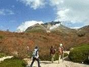 空気も澄んで、はるかに那須の山々がはっきり見ることが出来ます。その山々はすっかり色付き、紅葉も山頂から始まっています。冬に向かい葉を落とす植物(落葉樹)が紅葉しますが、それは、気温が低下するとエネルギー生産のための光合成ができなくなり、葉を維持するエネルギー(消費エネルギー)が生産できるエネルギーを上回るためと、氷結による温度低下や壊死などを防ぐために葉を落とすようです。低温にならない地域では、常緑樹が生え、また針葉樹は表面積を減らして温度低下を乗りきります。そして、落葉するなら光合成はしなくていいので、光合成色素であるクロロフィル(緑色)を分解し、残ったカロテンやキサントフィルなどの色素が葉を黄色にします。さらに植物は、葉を落とすための準備を始めます。葉柄の付け根にコルク質の離層という組織がつくられ、物質の行き来はここで妨げられて、葉の中の物質は茎に移動できなくなり、光合成で生産された糖は葉に留まることになります。紅葉する葉では、この糖から赤い色素アントシアニンができて葉が赤くなり、やがて離層のところで切り離されて落葉します。寒さの中を生き抜く植物の工夫が紅葉なのです。
