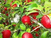 「柿」は、「柿が赤くなれば医者が青くなる」といわれるほど、健康によく、薬効も古くから利用されています。柿の主成分は糖質で、ブドウ糖、果糖、蔗糖を多く含み、エネルギー化されるのが早いのが特徴。柑橘類に次ぐビタミンCを多く含み、他、B1、B2、ミネラルなど各栄養素をバランス良く含んでいて、柿のオレンジ色は、ベータカロチンによるものでビタミンAの効力をもち、ビタミンAとCを含むことにより、疲労回復、かぜの予防、高血圧症やガン予防、老化防止などの効果があります。生柿はビタミンCは、大きなものなら1個で1日の摂取量がとれるそうです。干し柿にすると、生柿の時より、糖分は4倍、ビタミンAは2倍近くになり、胃腸を丈夫にし、内臓を温め、疲労回復に効果があり、また表面につく白い粉(柿霜=しそう)は、粘膜をうるおし、せきを止め、たんを取り除く作用があります。慢性の気管支炎や肺結核の予防に有効。甘柿でも熟す前は、シブミがありますが、これはシブオールというタンニン成分で、熟してくると、タンニンが変化して、渋みが感じられなくなります。タンニンには、血圧を下げる効果があり、カリウムも含まれているので、利尿効果があり、飲酒後や二日酔いにはもってこいの果物です。さらに、最近、柿の葉も注目を浴びています。柿の葉も、実にまけないほど効力を発揮します。「自然のビタミンC剤」といわれるほどの含有量があり、その量は、みかんの数十倍ともいわれ、喫煙や飲酒で失われたビタミンCを補うのにピッタリで、若葉を使った天ぷら、和え物、サラダなどにして摂取すれば、効用を生かすことができます。