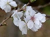 この時期に桜の花を見かけます。冬季に咲く早咲きの桜「寒桜(かんざくら)」で、「冬桜(ふゆざくら)」と呼ばれます。「正月桜(しょうがつざくら)」という種類もあって、10月過ぎから冬の寒空に、可憐な花を楽しませてくれます。調べてみると、このサクラは春も咲くようです。そのときは他の桜と同様、一斉に咲いて一斉に散ります。一年に2回も咲いて、楽しませてくれる桜です。