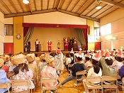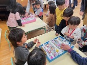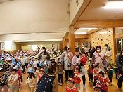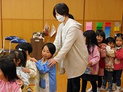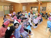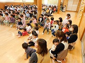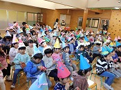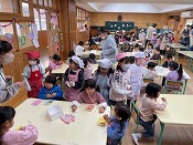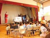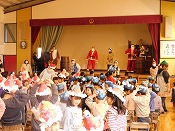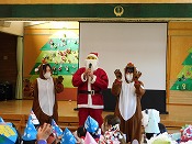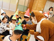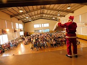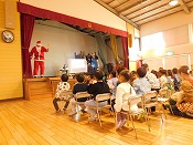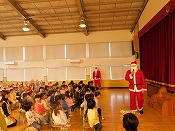 第二ひかり幼稚園では、冬休みを前に「クリスマスたのしみ会」を開催いたしました。初めに体育館に全園児が集まり、学年ごとに先生たちが出し物を企画して子どもたちを楽しませました。月組は「クリスマス演奏会」、星組は「ダンス」、花組は「ハンドベルのミニコンサート」を行い、先生たちで寸劇「大きなプレゼント」を行い子どもたちを楽しませ、笑顔のあふれる「たのしみ会」となりました。そして「たのしみ会メニュー」の特別メニューの給食(チキンライス、野菜スープ、チキンナゲット、和風サラダ、クリスマスデザート、ジュース)を縦割り3ブロックに分かれて美味しくいただきました。