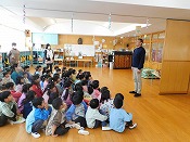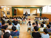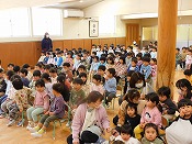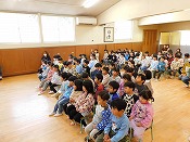 本日、幼稚園では「成道会集会」を開催しお釈迦さまのみ教えを子どもたちに伝えました。お釈迦さまがさとられた内容は、「縁起の法」といい、 「この世に存在する現象は、様々な原因や条件によって起こり、このもろもろの現象 の生起消滅の法則を縁起」と言います。そして、お釈迦さまは、人々の苦しみの原因 を取り除くには、正しい行動を繰り返すことによって解決できると確信されました。 また、お釈迦さまは「明けの明星の輝く中で、自分も大地も生きとし生けるすべての ものが同時にさとりを開いた」と説かれます。大地の総てのものが「縁起の法」の中に生き、それを自覚して学び、そのあるべき姿で行じていくことを示されました。子どもたちにも分かるようにやさしく丁寧に伝えました。