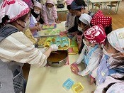 ひかり幼稚園では、本日「12月誕生会」を開催いたしました。今日は12月らしい寒い日となりましたが、今月の誕生会も子どもたちの元気な歓声が園内に響いて元気あふれる幼稚園です。今月の誕生会メニューは「ワカメご飯、湯葉と三つ葉の味噌汁、海老カツフライ、バンバンジーサラダ、デザート(植物性プッチンプリン)」でした。「ワカメご飯」は優しい味わいで、「海老カツフライ」は参加者からとても高評価でした。