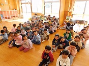 間もなく2月3日「節分」です。幼稚園では2月3日に「豆まき」を行い、豆の力で、自分の中の弱虫や泣き虫の鬼を追い払います。「立春」の新しい年回りが始まる日に幼稚園や自分の中を清め祓い良い一年としたいものです。さて、その豆まきの「豆知識」です。 1、福豆には、「まめ(健康)に過ごせるように」との願いが込められていて、自分の年齢の数だけ豆を食べると、1年間病気にならず健康に過ごせます。 2、厄年の人は、早く1年が過ぎるようにと豆を1つ多く食べましょう。 3、豆まきには、生の豆でなく、炒った豆を使います。それは、厄を払い厄をしょった豆から(厄・災難の)目が出ることがないようにという意味からです。 4、豆(大豆)のカロリーは、100gで417kcalだそうです。結構ありますね。 5、福豆は炒った大豆が普通ですが、北海道などでは落花生などを撒きます(大豆よりも回収し易く、殻ごと撒くため地面に落ちても食べられるからだそうです)。 6、掛け声は通常「鬼は外、福は内」ですが、鬼を祭神または神の使いとしている神社では「鬼は外」ではなく「鬼も内(鬼は内)」とし、「鬼」の付く姓(鬼塚、鬼頭など)の家で「鬼は内」の掛け声があるようです。