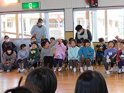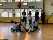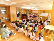 本日、幼稚園では令和8年の「新年会」を行いました。全園児がホールに集まり、新年のあいさつを行い、先生たちがいろいろな出し物を披露して楽しく過ごしました。自分は今年もマジックショーを披露し、次いで「十二支の物語」に歳神(としがみ)さまの役で登場して十二の干支のお話を演じ、子どもたちに伝えました。今日も寒い日でしたが、園内は子どもたちの元気いっぱいの完成と笑顔で元気に明るく楽しく過ごせました。