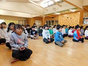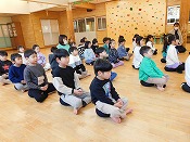 本日、ひかり幼稚園の年長児(月組)の子どもたちは「1月座禅会」をホールで修行しました。4月から毎月行っている「月例座禅会」は回を追って安定し、今日も 充実しています。今回の座禅会でも各自が自覚して取り組む姿が確認出来ました。3月の卒園まで残り2回となりまた。来月もしっかりと取り組んで参ります。
