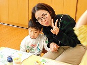 本日、第二ひかり幼稚園では「1月誕生会」を開催しました。寒中ですが今日は少し暖かく、園内は元気な子どもたちの歓声であふれ、楽しく明るい「誕生会」となりました。楽しみな誕生会メニューの給食は、「かき揚げ丼、ワカメと豆腐の味噌汁、ニンジンしりしり、イチゴとミカンの2色ゼリー」で、美味しく楽しくいただきました。終始、明るい声が響いて楽しく過ごしました。