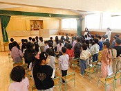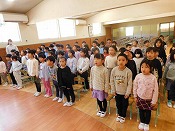 春今週末、14日(土)に卒園式を控え、今日は年中児(星組)が中心となって年長児(月組)の子どもたちを送別する「おわかれの会」を行いました。全園児が体育館に集まりクイズやリズムを楽しみ、優しくしてくれた月組の卒園児に対して感謝の言葉を届けました。朗らかに楽しく過ごした「おわかれの会」でした。