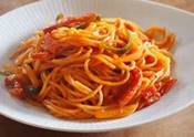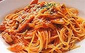 今日の献立は「スパゲッティナポリタン」です。ナポリタン発祥の地は日本で、一説には1927年(昭和2年)に横浜・山下町で開業した老舗の「ホテルニューグランド」が終戦後に提供したのが最初だとされています。当時、このホテルはGHQに接収され、進駐軍は持ち込んだパスタを茹でてケチャップを混ぜただけのものを食べていましたが、これを見かねたホテルの二代目総料理長の入江茂忠氏が、炒めたハムとマッシュルームを茹でたパスタに加え、トマトペースト、玉ねぎ、にんにくなどを使ったトマトソースで和えた料理を完成させました。これが「ナポリタン」の発祥で、当時はトマトソース自体を「ナポリ風」と呼んでいたのがその名の由来であるとされています。このソースの原型は同ホテルの初代料理長サリー・ワイル氏の時代に既にあったのではないかとも言われ、トマトソースで和えたパスタをフランスでは「スパゲティ・ナポリテーヌ」と呼んでいて、入江氏がワイル氏からこの料理について教わっていた可能性も考えられます。どちらにしても、茹でたパスタを冷ましてから湯通しし、柔らかくする一手間を加え親しみやすいものにしたのは入江氏の功績です。スパゲッティナポリタンは子どもたちから好評なメニューで、今日もケチャップソースで口の周りを染めながら美味しくいただきました。
