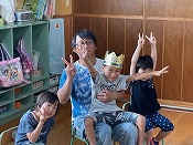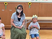 子どもたちは午前中、園庭に飾られた七夕飾りを見て回り、私もそれぞれの願い事を読ませてもらいました。