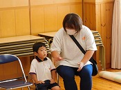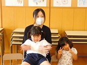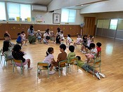 第二ひかり幼稚園では本日、「たのしみ会」を開催し、給食も「たのしみ会メニュー」の献立年長児(月組)の子どもたちが配り、「鮭ご飯、湯葉と三つ葉の味噌汁、パンケーキ、ドーナツ、ミックスサラダ、フライドポテト、ジュース」の豪華なランチを涼しい教室で美味しく楽しくいただきました。