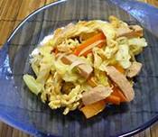 今日の献立には、「キャベツの甘酢和え」です。キャベツは栄養も健康効果もとても高い野菜で、ビタミンCをはじめ「キャベジン」という別名で有名なビタミンU、ビタミンK、ベータカロチン、カルシウム、カリウム、葉酸などさまざまな栄養がたっぷり。ビタミンCは、抗酸化作用、免疫力を高め、疲労を回復、コラーゲンをつくって血管・皮膚・骨などを丈夫し、ストレスから体を守り、シミを防ぐ、など。「キャベジン」と呼ばれている栄養がビタミンUで、胃や十二指腸の健康を守るはたらきがある栄養素です。ビタミンKはカルシウムが骨をつくるのをサポートして骨を丈夫にする栄養素。また血液を固めるはたらきがあって、すばやく血を止めて傷の治りを早くするはたらきもあります。キャベツには意外にもカルシウムが多く含まれ、イライラを解消しておだやかな気分にし、ビタミンCやビタミンKなどの栄養との相乗効果で、骨や歯をしっかりと強く育ててくれます。ベータカロチンは、体内でビタミンAに変化し、目の健康、粘膜を守る(=風邪などの感染症の予防)、抗酸化作用、免疫力を高める、肌や髪や爪を美しく、といった健康効果を発揮する栄養です。カリウムも豊富に含まれ、体の余分なナトリウムを排出して血圧を下げ、筋肉の動きをスムーズにして心肺機能を正常に維持し疲れにくくしてくれます。そして、葉酸も豊富で、血液をつくるサポート、細胞の再生を助け、DNA(遺伝子)核酸を作るサポート、妊娠中のお腹の赤ちゃんを正常に成長させるといったはたらきがある栄養素です。キャベツが美味しい時節ですので、ご家庭でもたくさん食べましょう。