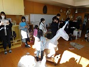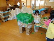 た。制作物は大きなものが多く、年少児はその大きさに少し圧倒され驚いた様子です。会場も2クラス分の広いスペースでの開催となりゆっくりじっくり楽しむことが出来ました。