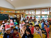 本日、ひかり幼稚園では「クリスマス会」を行いました。年長児(月組)の子どもたちが中心になって運営し、クラスを解体して4つのグループに分かれてゲームやリズム活動を楽しみ、グループでクリスマスメニューの給食を頂きました。子どもたちの大好きな鶏唐揚げや特製のクリスマスのデザートのイチゴショートケーキが好評で、楽しいクリスマス会となりました。