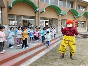 今日は「立春」、季節は春に変わります。昨日は節分で、ご家庭で豆まきを行った方も多いことでしょう。幼稚園では本日、子どもたちお健やかな成長を願って「豆まき」を行いました。用意した豆を各自が作った特製の豆入れに入れて、園庭に現れた鬼に向かって投げつけました。鬼は痛い痛いと言って早々に退散しました。