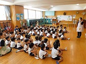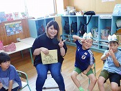 本日、ひかり幼稚園では卒園した小学1年生を招いて「ひかり会」を開催いたしました。9時に集まり、記念撮影を行ってからクラスごとにゲームなどを楽しみ、昼食は幼稚園の給食を久しぶりにお友だちと楽しく食べました。午後は今日の記念碑品の制作活動を行って、おやつには秋田名物の「ババへら」アイスをいただきました。少し成長した卒園児に会えてうれしく思いました。これからの健やかな成長を祈念いたします。
