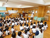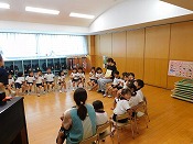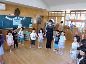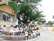 本日、幼稚園では一学期の終業式を行い、夏休み中の注意事項などを伝えました。バスの運行はお休みに入り、1号児は夏休みとなりますが、2号児や新2号児は夏休み中も幼稚園に登園し、給食も通常通り提供されます。夏休み中も「早寝・早起き・朝ごはん」を心がけて生活の安定を図り、戸外での事故やケガにもご注意ください。夏休み中も子どもたちの成長は進みます。健やかで康らかな日送りを願います。