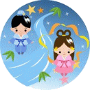7日は「七夕」ですが、夜空に輝く天の川のそばに、天の神さまが住んでいます。天の神さまには一人の娘がいて、名前を、織姫といいます。織姫ははたをおって、神さまたちの着物をつくる仕事をしていました。織姫が年頃になったので、天の神さまは娘にお婿(むこ)さんを迎えてやろうと思いました。そして色々探して見つけたのが、天の川の岸で天のウシを飼っている、彦星という若者です。この彦星は、とてもよく働く立派な若者です。そして織姫も、とてもやさしくて美しい娘です。二人は相手を一目見ただけで、好きになりました。二人はすぐに結婚して、楽しい生活を送るようになりました。でも、仲が良すぎるのも困りもので、二人は仕事を忘れて遊んでばかりいるようになったのです。「織姫さまがはたおりをしないので、みんなの着物が古くてボロボロです。はやく新しい着物をつくるように言ってください」 「彦星がウシの世話をしないので、ウシたちが病気になってしまいました」 天の神さまに、みんなが文句を言いに来るようになりました。