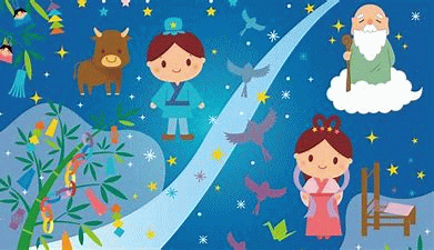 7日は「七夕」ですが、夜空に輝く天の川のそばに、天の神さまが住んでいます。天の神さまには一人の娘がいて、名前を、織姫といいます。織姫ははたをおって、神さまたちの着物をつくる仕事をしていました。織姫が年頃になったので、天の神さまは娘にお婿(むこ)さんを迎えてやろうと思いました。そして色々探して見つけたのが、天の川の岸で天のウシを飼っている、彦星という若者です。この彦星は、とてもよく働く立派な若者です。そして織姫も、とてもやさしくて美しい娘です。二人は相手を一目見ただけで、好きになりました。二人はすぐに結婚して、楽しい生活を送るようになりました。でも、仲が良すぎるのも困りもので、二人は仕事を忘れて遊んでばかりいるようになったのです。