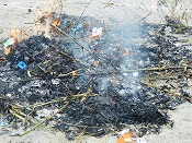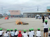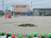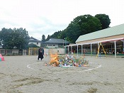 7月7日に一人ひとりの願い事を短冊に記して飾った「七夕飾り」を、本日、園庭で園児たちが見守る中で読経しお焚き上げを行いました。園庭中央に置かれた「七夕飾り」は、点火するとアッという間に燃え上がり、たちまち燃え尽きてしまいました。そして、子どもたちの願いも空に昇っていきました。