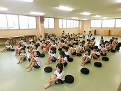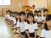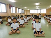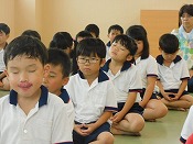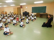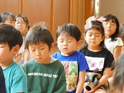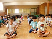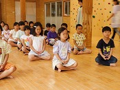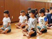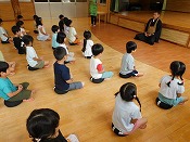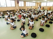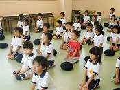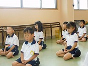 本日、ひかり幼稚園では年長児(月組)の子どもたちが「7座禅会」を修行しました。今回で4回目となり、先月よりも安定感が増し、作法もしっかりと身に付いてスムーズに進行して、充実感を実感し座ることが出来ました。幼稚園は間もなく夏休みに入りますが、生活の安定が何よりも大切です。姿勢を調えて、呼吸を調えて、心を調え日々安定して過ごして欲しいと願います。