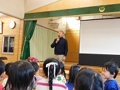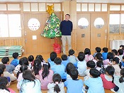 本日、幼稚園では令和8年の「新年会」を行いました。全園児がホールに集まり、新年のあいさつを行い、先生たちがいろいろな出し物を披露して楽しく過ごしました。自分は今年もマジックショーを披露し、次いで「十二支の物語」に歳神(としがみ)さまの役で登場して十二の干支のお話を演じ、子どもたちに伝えました。今日も寒い日でしたが、園内は子どもたちの元気いっぱいの完成と笑顔で元気に明るく楽しく過ごせました。
