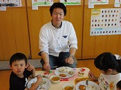 今日は園児も教職員も大好きな「ハヤシライス」です。「ハヤシライス」は、明治初期創業の上野精養軒で、当時勤めていた林さんというシェフが作ったのがはじまりわれ、牛肉の切れ端と余った野菜をデミグラスソースで煮込み、ライスにかけた従業員用のまかない飯を、シェフの名を冠してお店で提供するようになったといわれます。一方で大手書店「丸善」の創始者・早矢仕(ハヤシ)の名前から、ハヤシライスが生まれたという説もあります。早矢仕氏の名が語源だとする説にはふたつあり、かつて医師として勤めていた病院で、肉と野菜の煮物をご飯にかけて患者の食事としたという説がひとつ。もうひとつは、創業後に仕事仲間をなじみの西洋料理店へ連れて行き、肉と野菜のソース煮込みに、ライスを添えて出させたことからついたという説です。当社の社史にはこの説が掲載されていて、丸の内本店や日本橋店併設のカフェで名物メニューとなっています。いずれにせよ、幼稚園の「ハヤシライス」はとても美味しくて大満足の給食です。