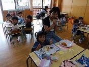 今日の献立は、「食パン、牛乳、ポーションフライ、和風サラダ」です。さて、「ポーション」とは、提供する食事の分量のことを言い、1皿分の分量のことで、それぞれのメニューに決められた分量があり、その分量を守ることで食品のロスなどを防ぐことができます。明確にポーションを決めておけば無駄なく料理を提供することが可能となるので、幼稚園では適正な分量を定めた量を一人ひとりに提供します。今日は白身魚のフライです。栄養があってヘルシーで何より美味しくいただきました。