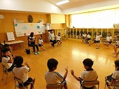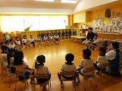 子どもたちは午前中、園庭に飾られた七夕飾りを見て回り、私もそれぞれの願い事を読ませてもらいました。
