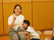 第二ひかり幼稚園では本日、「たのしみ会」を開催し、給食も「たのしみ会メニュー」の献立年長児(月組)の子どもたちが配り、「鮭ご飯、湯葉と三つ葉の味噌汁、パンケーキ、ドーナツ、ミックスサラダ、フライドポテト、ジュース」の豪華なランチを涼しい教室で美味しく楽しくいただきました。