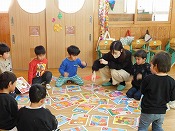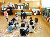 ひかり幼稚園では本日、「1月誕生会」を開催いたしました。今日は穏やかに晴れて暖かく、各クラスからは明るい元気な歓声が響き、今月の誕生会も大いに盛り上がっていました。今月の誕生会メニューの給食は、「かき揚げ丼、ワカメと豆腐の味噌汁、ニンジンしりしり、イチゴとミカンの2色ゼリー」で参加者から好評でした。そして楽しみな誕生会のプレゼントは「お絵かきカイト」です。幼稚園でカイト(凧)に絵を描いて少し遊んでからご家庭に持ち帰りますので、ご家庭でも楽しんでください。