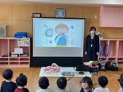 本日、ひかり幼稚園ではヤクルト提供の「おなかげんききょうしつ」を行い、宇都宮からヤクルト広報の方がおいでになり、「おなかのこと」「菌のこと」「ウンチのこと」など健康にかかわる話を幼児向けに優しく丁寧に聞かせていただきました。分かりやすく楽しい内容で子どもたちは集中してよく聞き入っていました。そして、子どもたちみんなにヤクルトをいただき美味しく飲ませてもらいました。
