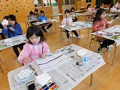 本日、ひかり幼稚園の年長児(月組)の子どもたちは「絵手紙教室」を行い、講師の鈴木啓子先生から絵手紙の書き方を学びました。楽しい指導のもと、のびのびと筆を動かして思い思いに取り組む姿が見られます。今後も「絵手紙教室」を行っていき、年賀状や卒園の記念になるような制作を行っていく予定です。子どもたちの活動を楽しみにしていてください。
